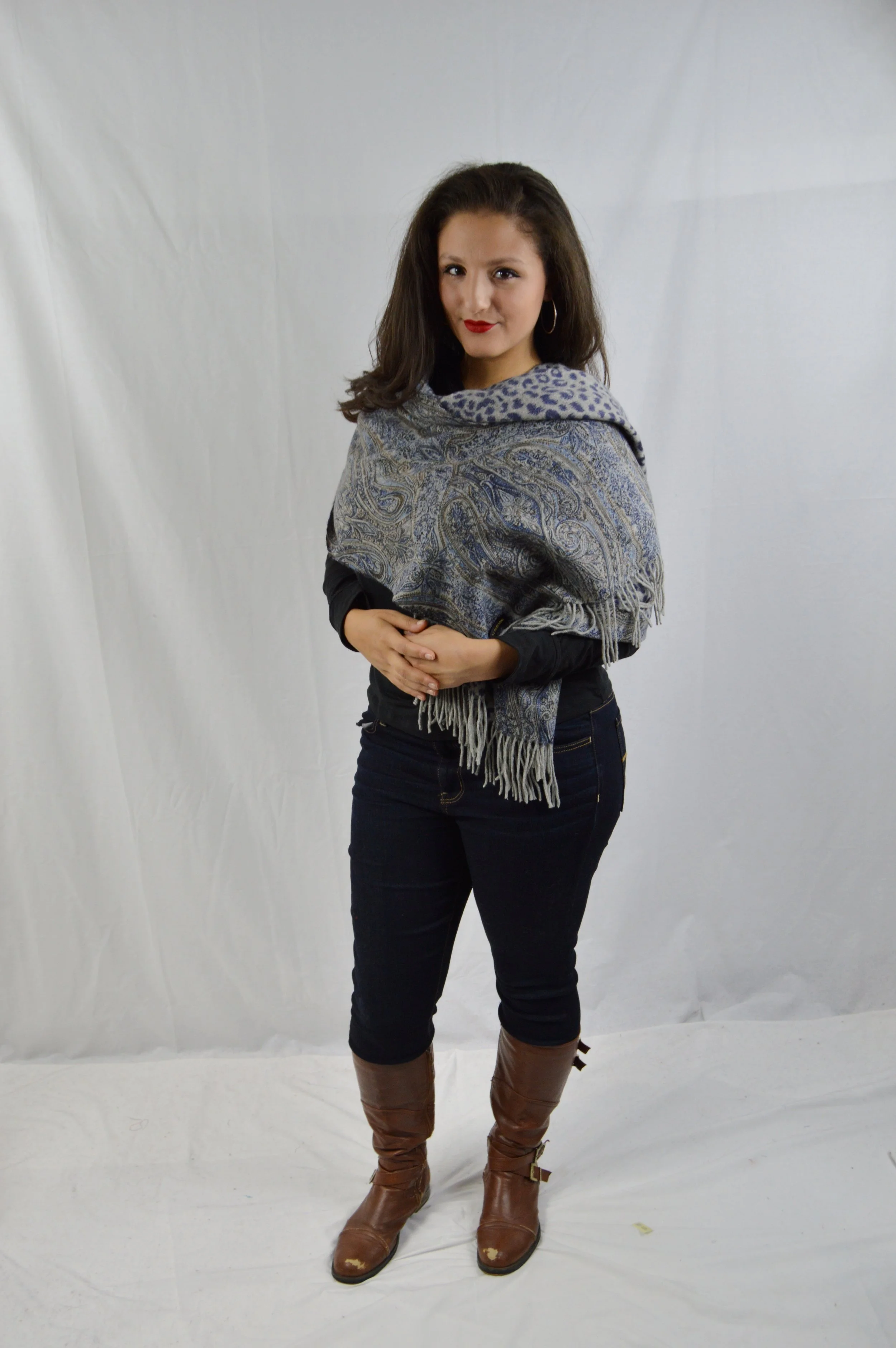 Cashmere Blend Shawl with Fox trim