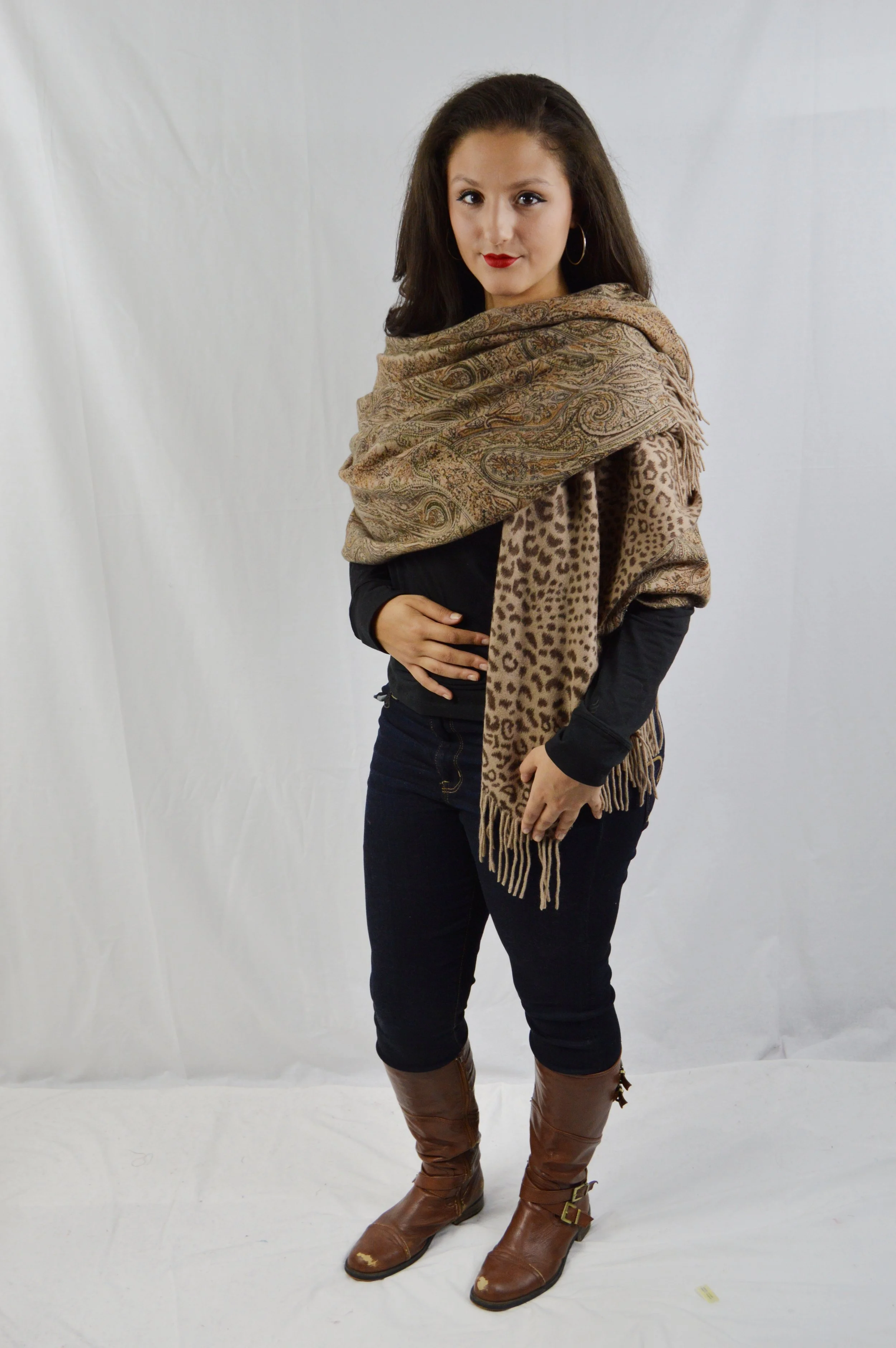 Reversible Cashmere scarf w fringes