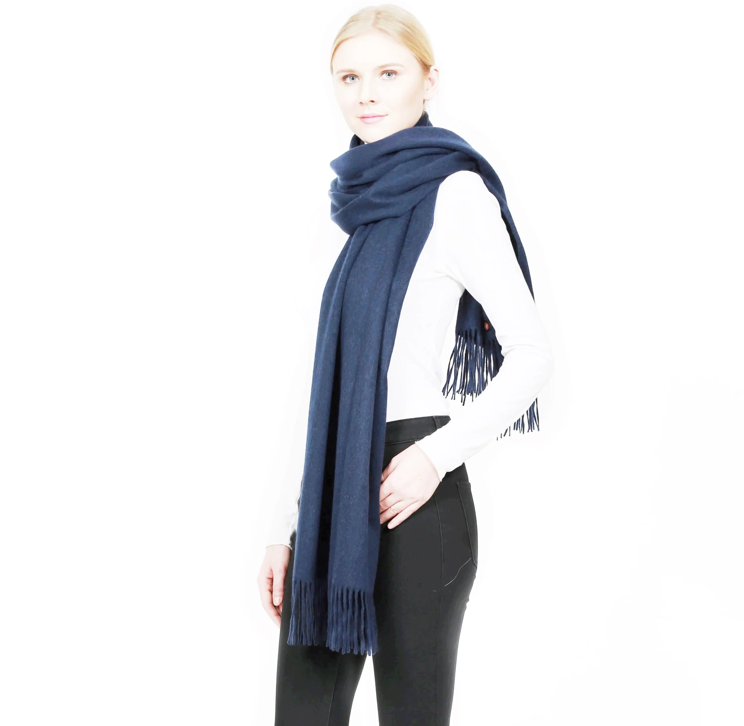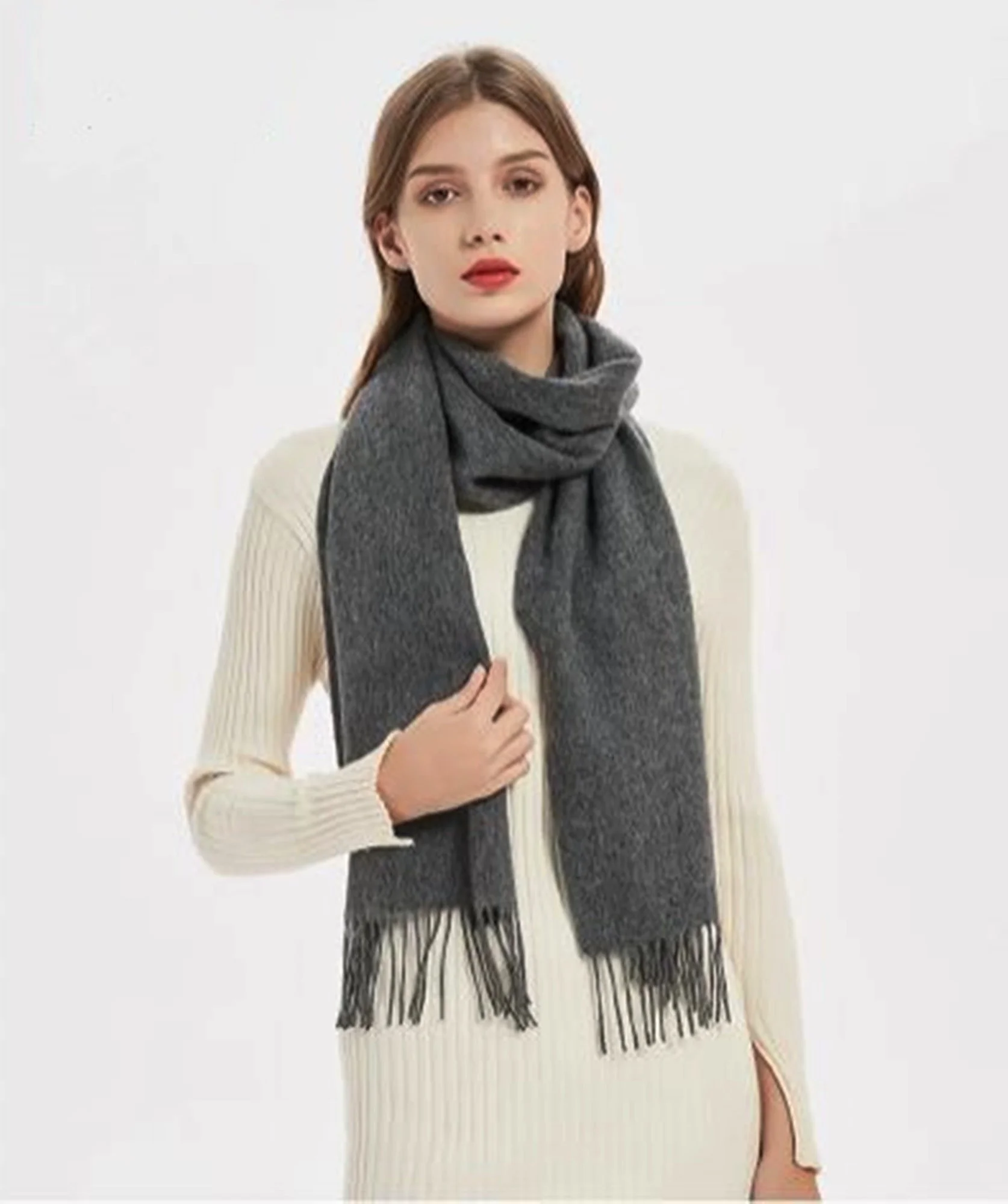 Measuring approximately 72” long and 27” wide with elegant 3.5-inch tassels on both ends, this unisex wrap drapes beautifully over coats, suits, or evening wear. Lightweight yet wonderfully warm, it folds easily into your handbag or travel case for effortless elegance anytime, anywhere.