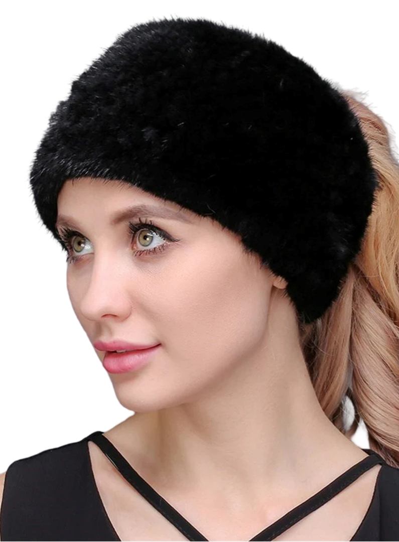 Winter Headbands Women Mink Fur Ear Warmer Headband beanie cap Headband-Headbands-Mink-hat-hats-cap-caps-Fox Headband-Fur-Collar-Headwear-Earmuff-Neck Warmer (Mink Two toned Headband & Neck warmer)