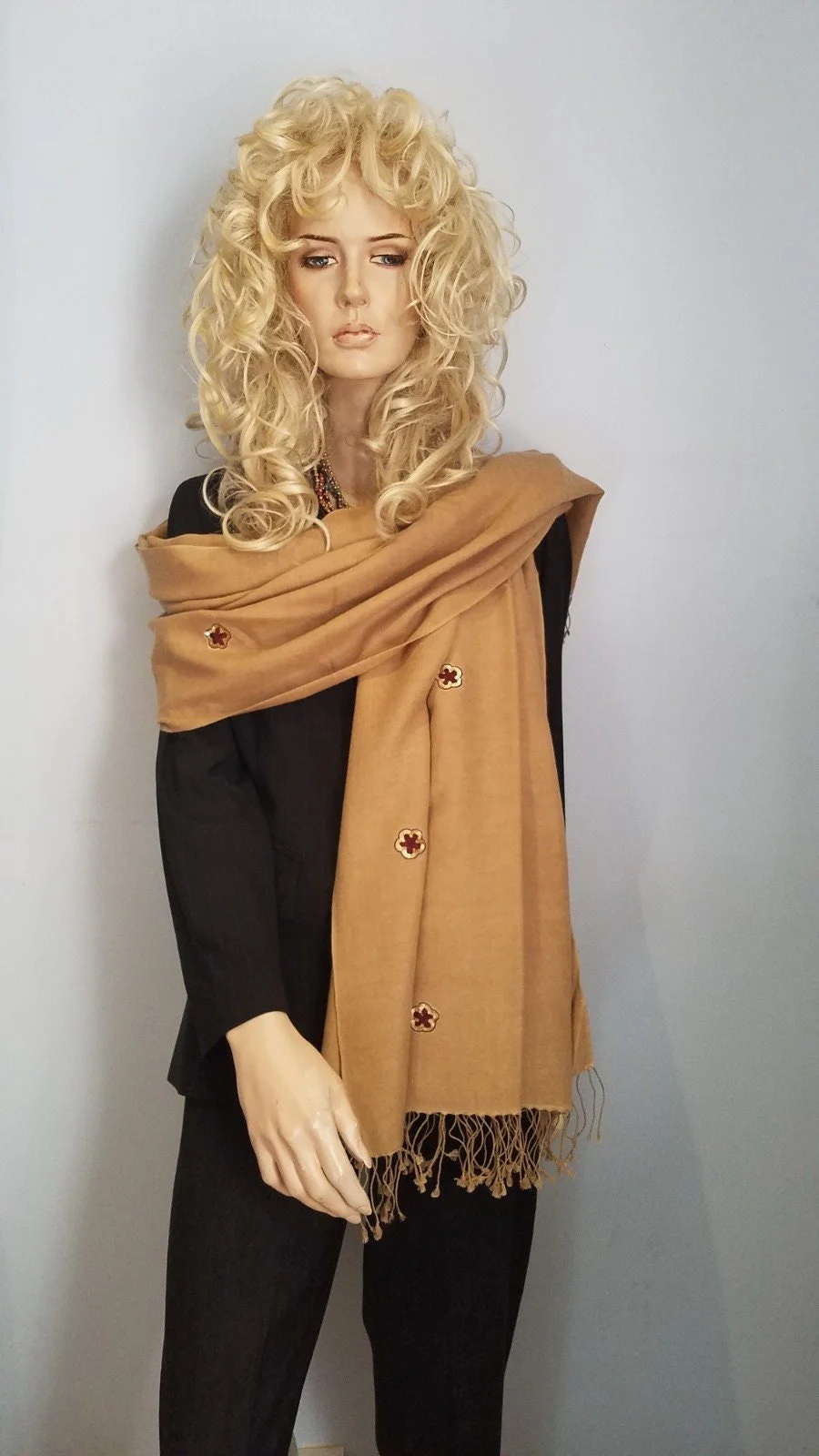 - Beaded Shawl/Beaded Scarf/Sequin Shawl/Sequin Scarf/Fancy Scarf/Fancy Shawl/Evening Shawl/Shawl/Scarf/Scarves/Shawls/Evening scarf-Camel-B20