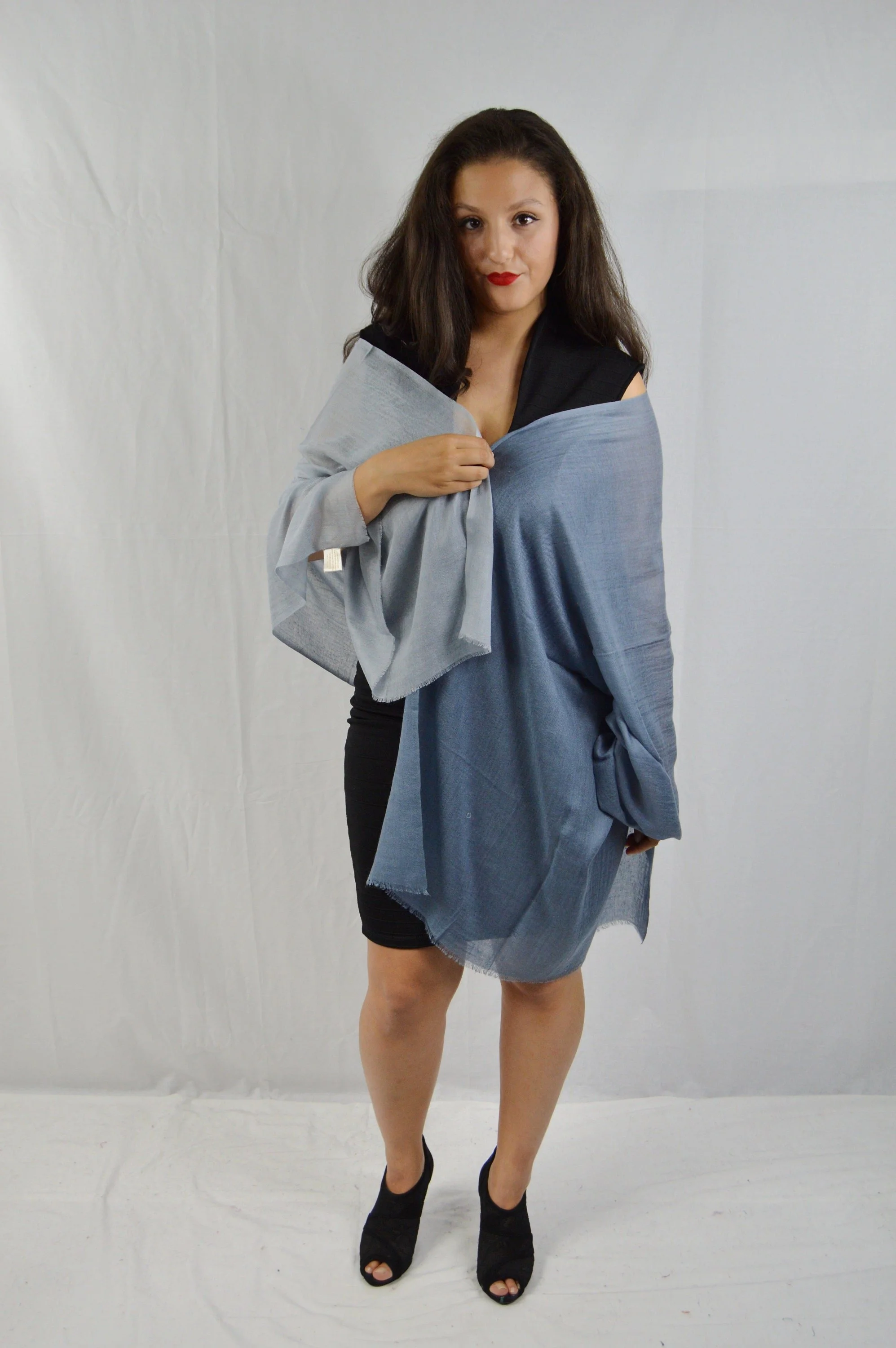 • These shawls are impeccably soft & delicately wispy. If you glide your hand under the fabric you will see how slight the fabric is as you will actually see your hand through the garment. Even though you can barely feel the Cashmere wool fabric against your skin & it may look delicate, yet that does not take away from its ability to keep you superbly warm. With all its sheerness, the mystique of cashmere reigns in how it insulates hence is the most sought after natural fibers in the world!